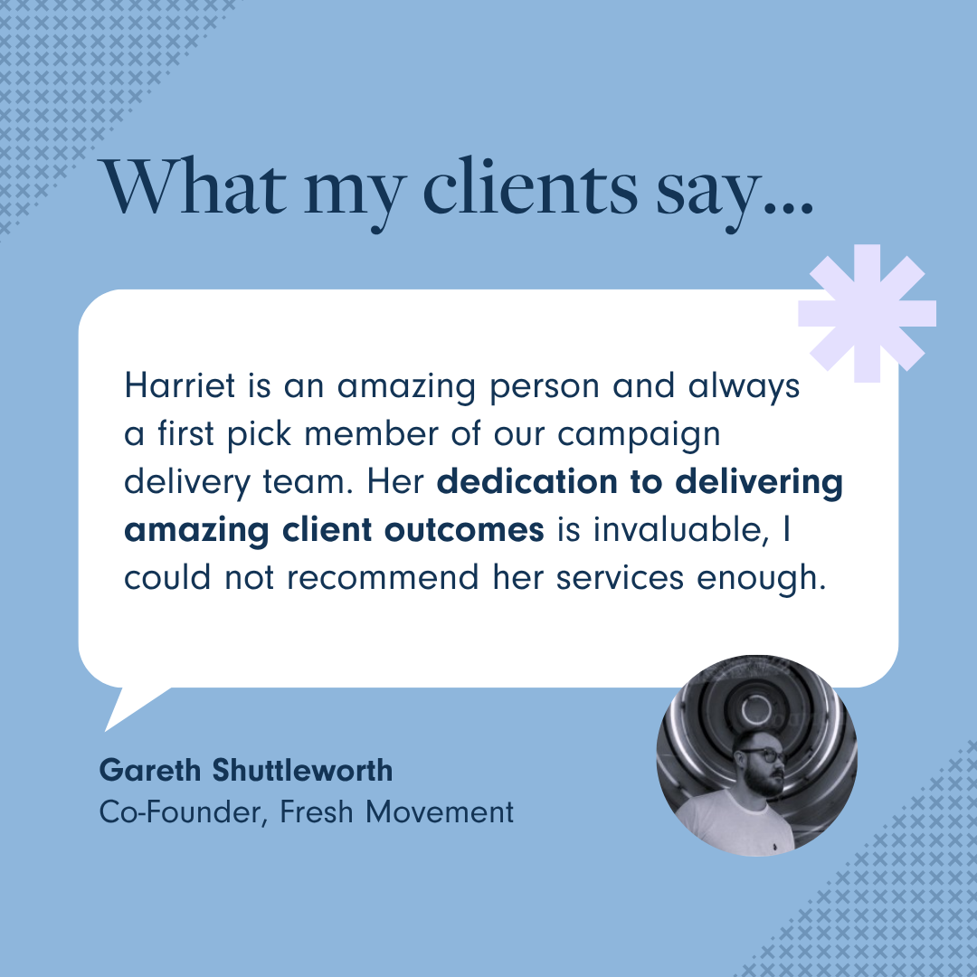 Ongoing marketing management (min 4 days per month) – I keep campaigns focused, on budget, review key deliverables, and provide feedback.